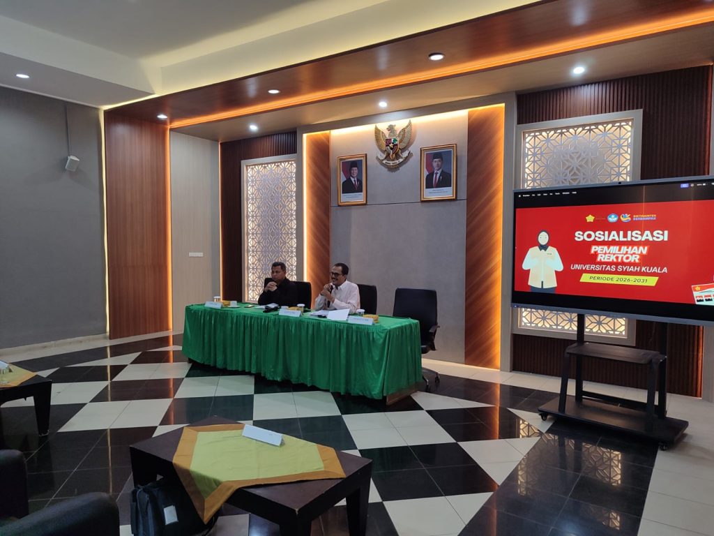 Panitia Pemilihan Rektor Universitas Syiah Kuala (PPR) USK menggelar kegiatan sosialisasi pemilihan Rektor USK untuk periode 2026 – 2031 kepada pengurus Organisasi Kemahasiswaan (ORMAWA) yaitu Badan Eksekutif Mahasiswa (BEM), Dewan Perwakilan Mahasiswa (DPM), dan Majelis Permusyawaratan Mahasiswa (MPM).